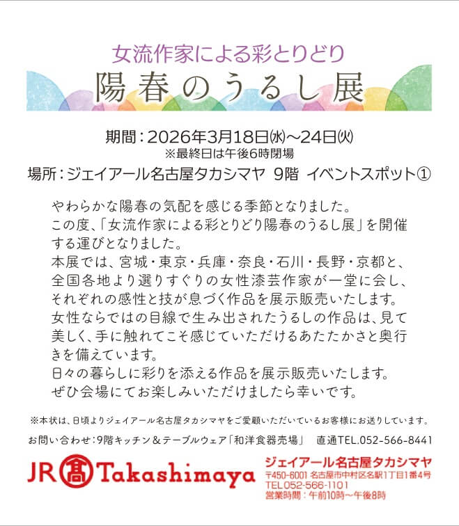 3月18日よりジェイアール名古屋タカシマヤにて